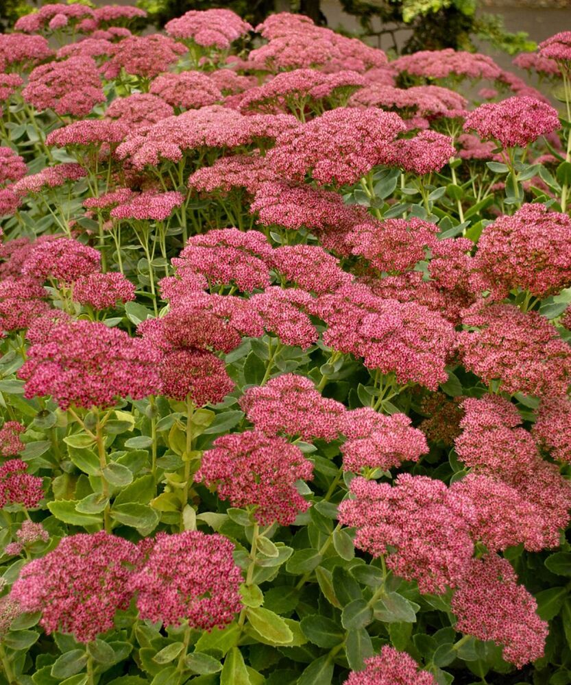 Очиток видный 'Herbstfreude' формирует плотный округлый куст с прочными прямыми побегами и сочной сизо-зелёной листвой. Цветки мелкие, звёздчатые, собраны в широкие соцветия диаметром до 20 см.